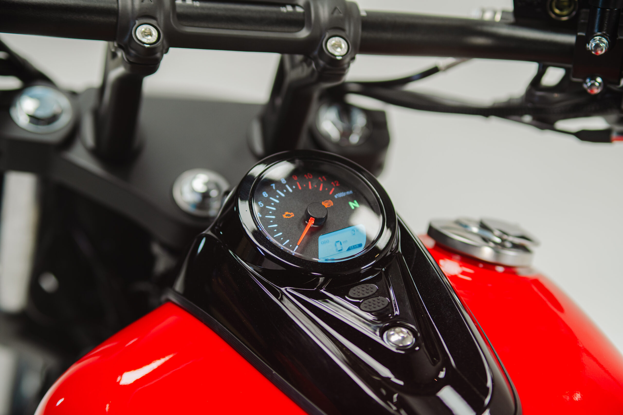 informações essenciais da moto como o indicador de combustível, marcha, neutro e