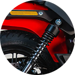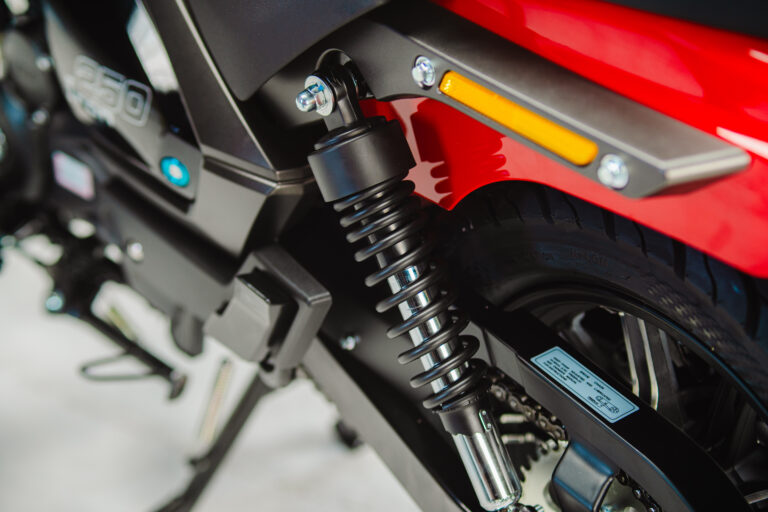 Na parte dianteira, a Iron conta com garfo telescópico, melhorando a aderência dos