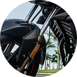 A JEF 150s EFI conta com rodas de liga leve aro 17”, garantindo mais estabilidade e