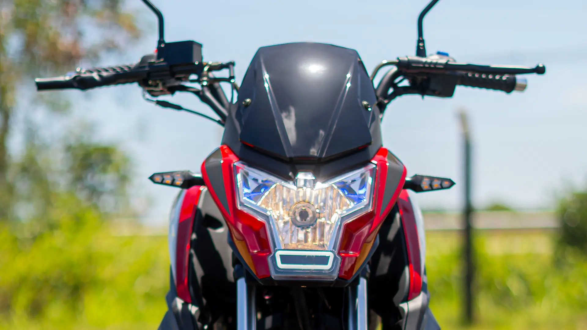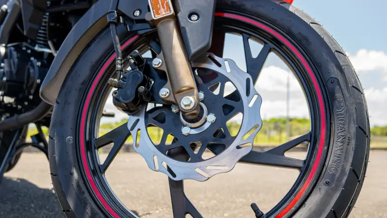 freio dianteiro à disco, oferecendo uma frenagem mais eficiente e rápida.