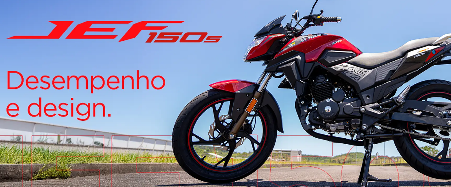 A versão evoluída da JEF 150s, agora com injeção eletrônica para ainda mais eficiência. O motor 150 cc EFI com 12,2 cv garante melhor desempenho e menor consumo, sem abrir mão do conforto. Painel digital, iluminação Full LED, porta USB e tanque de 14 L fazem dela uma moto que une tecnologia e confiabilidade.