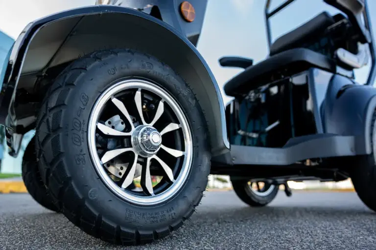 dianteira conta com aro 8´´ e traseira conta com aro 10´´. O freio dianteiro é à disco,