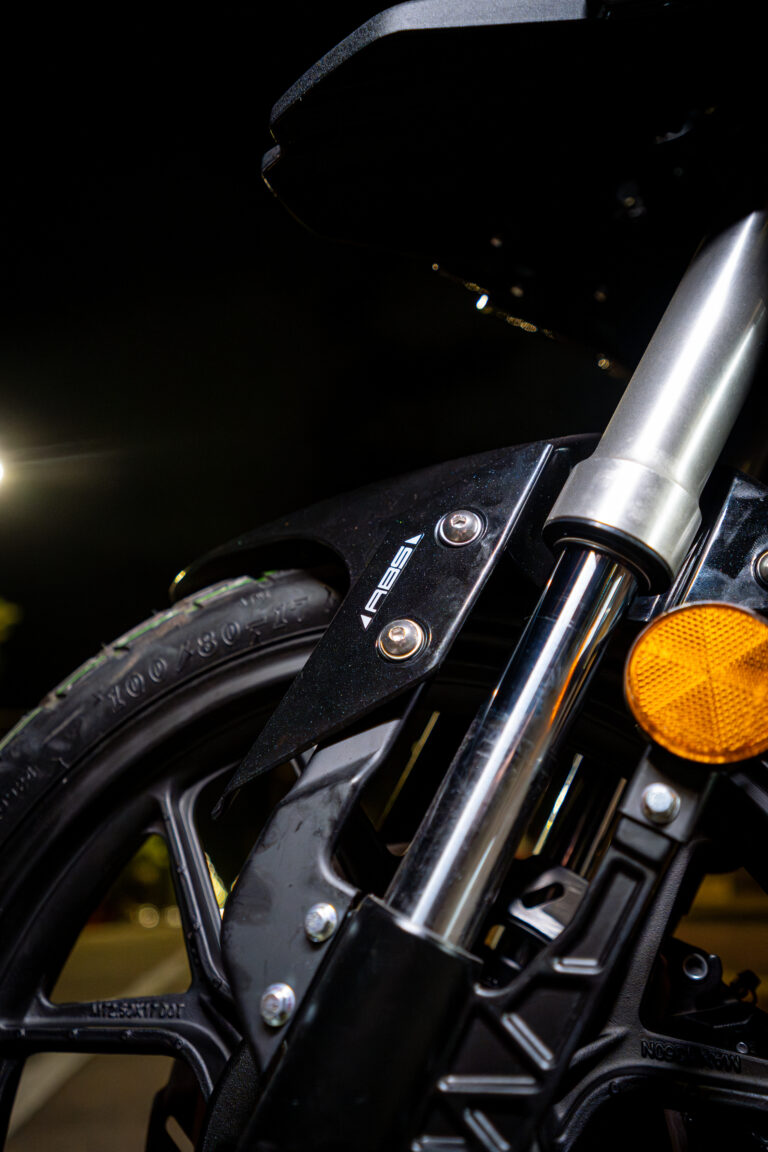 Na parte dianteira, conta com garfo telescópico invertido, que proporciona maior